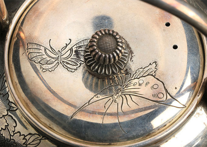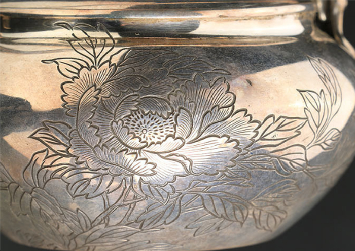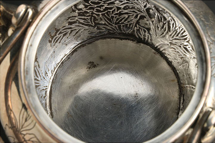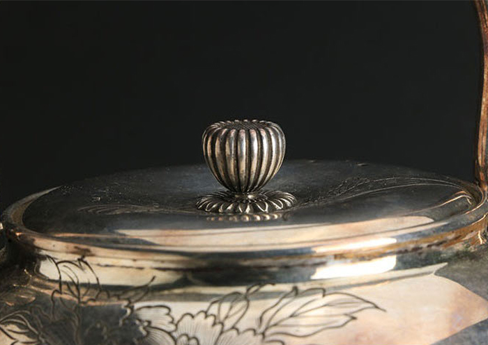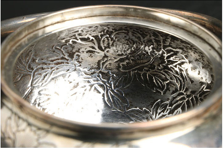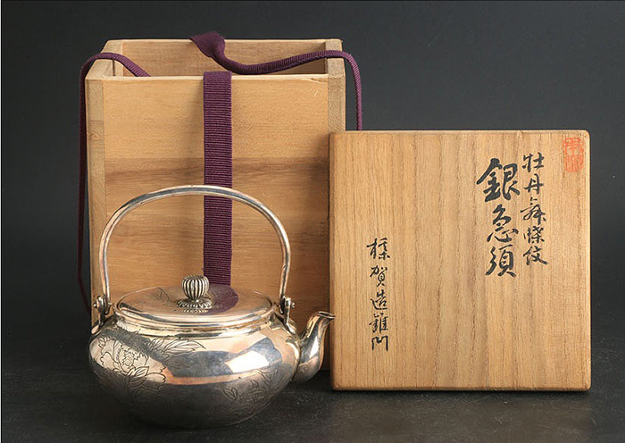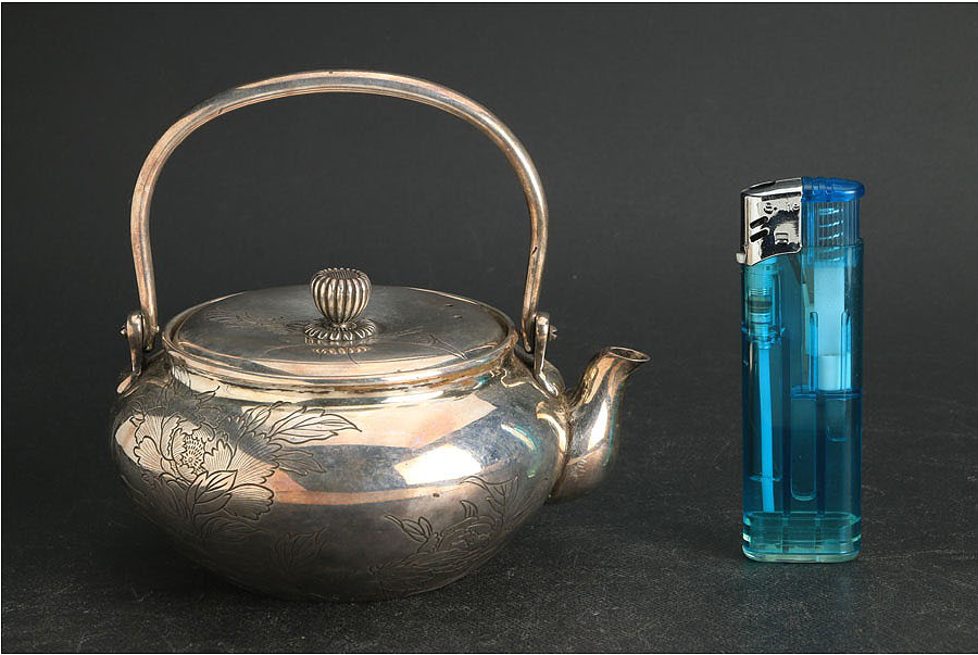 代购资讯2021.06.09銀壺【楳賀造鐫】专业日本代购乐胖 银壶 幅 9.7cm 奥行 11.2cm 高さ(持ち手除く) 6.6cm 重さ 182g(銀刻印無) [ 60サイズ] ※共箱附(落款無) ※水漏れはありません。
